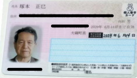 | マイナンバーが付された顔写真入りの身分証明書。裏面のICチップの中に個人情報が入っている。 有効期限 10年(20歳未満5年) |