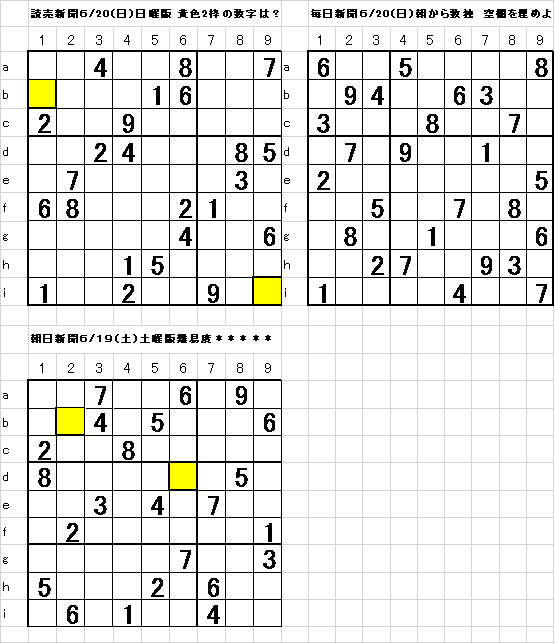 | 6、井桁 難問解読の場合 井桁のいずれかに1つの数字が入る形のものを探す | ||||||||||