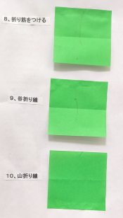 8、折り筋をつける 9、谷折り線
