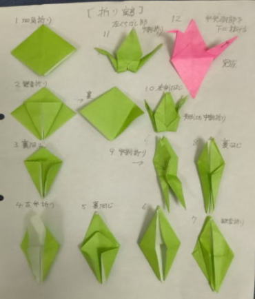 | 神奈川県 基本の折り方の活用を確認しながら鶴を折る |